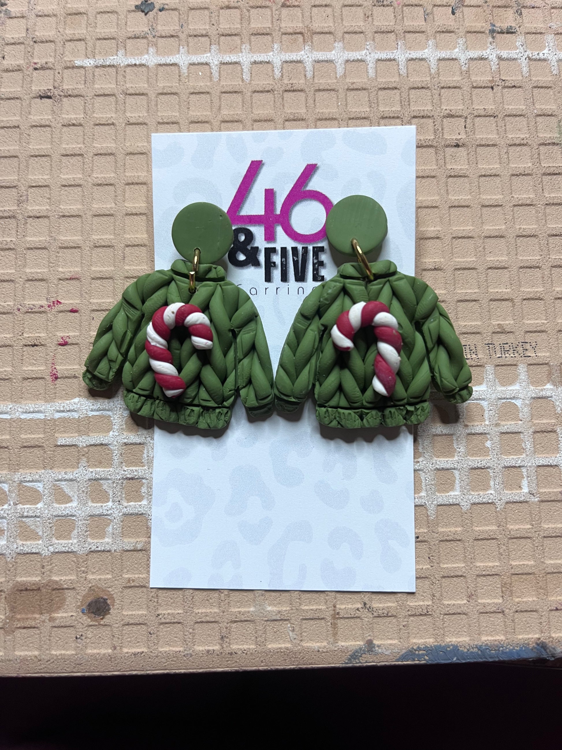 Add a sweet touch to your wardrobe with our Candy Cane Sweater Earrings! These 1 inch long earrings are adorably handmade and perfect for the girl who loves to stand out. Embrace your sweater weather swag with these playful and cute earrings.