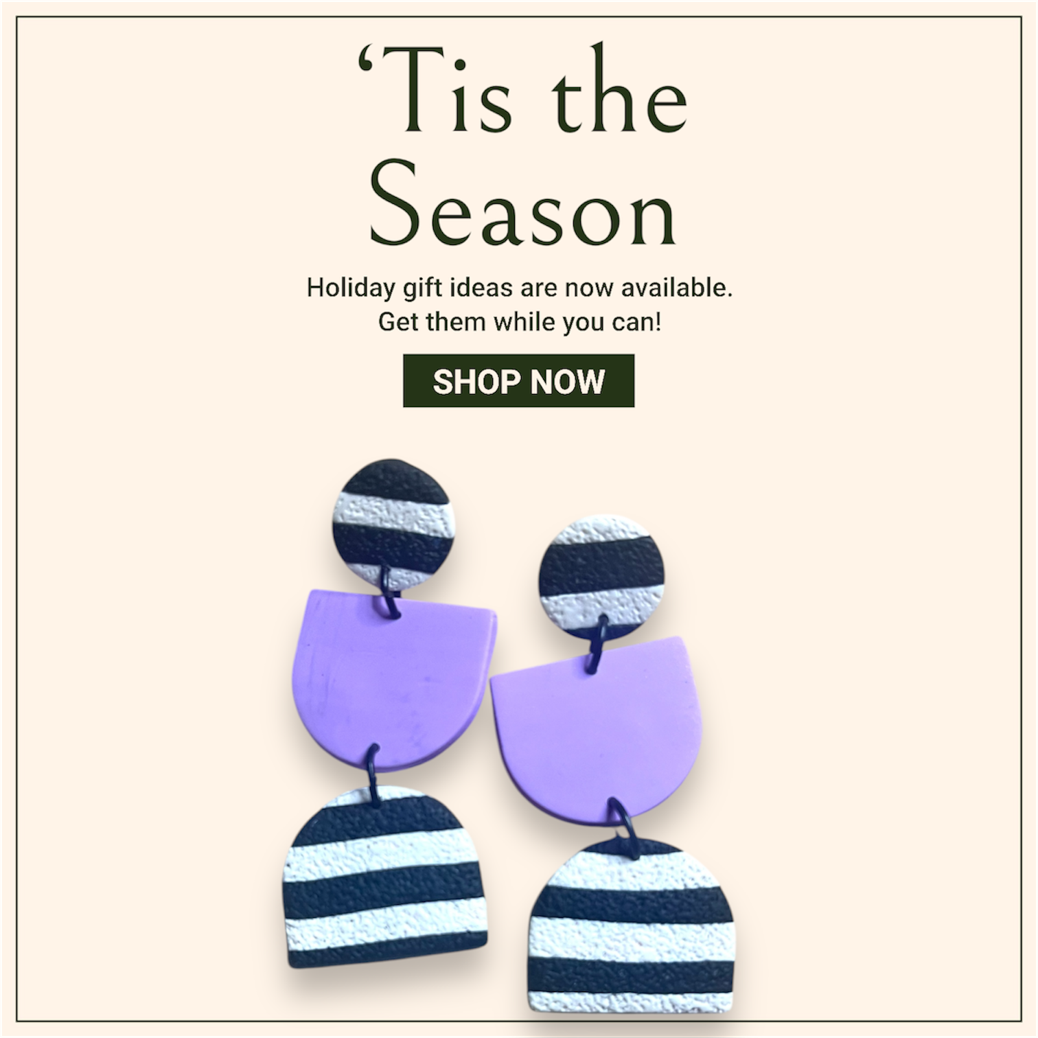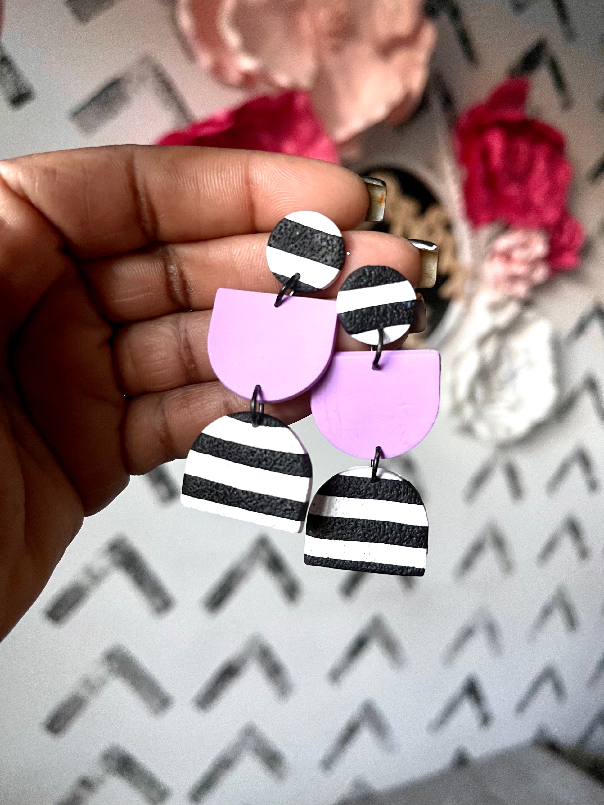 Add a pop of color and pizazz with Aadya-Power earrings! Made with lightweight polymer clay, these 2.5 inch purple, black, and white beauties are sure to turn heads. Perfect for everyday wear, let Aadya-Power be your new statement piece!